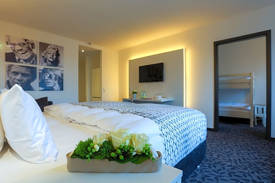 The spacious family room offers a wardrobe, a carpeted floor, as well as a private bathroom featuring a bath or a shower and a hairdryer. Rooms on the upper floors are reachable by elevator. The unit offers 2 beds.